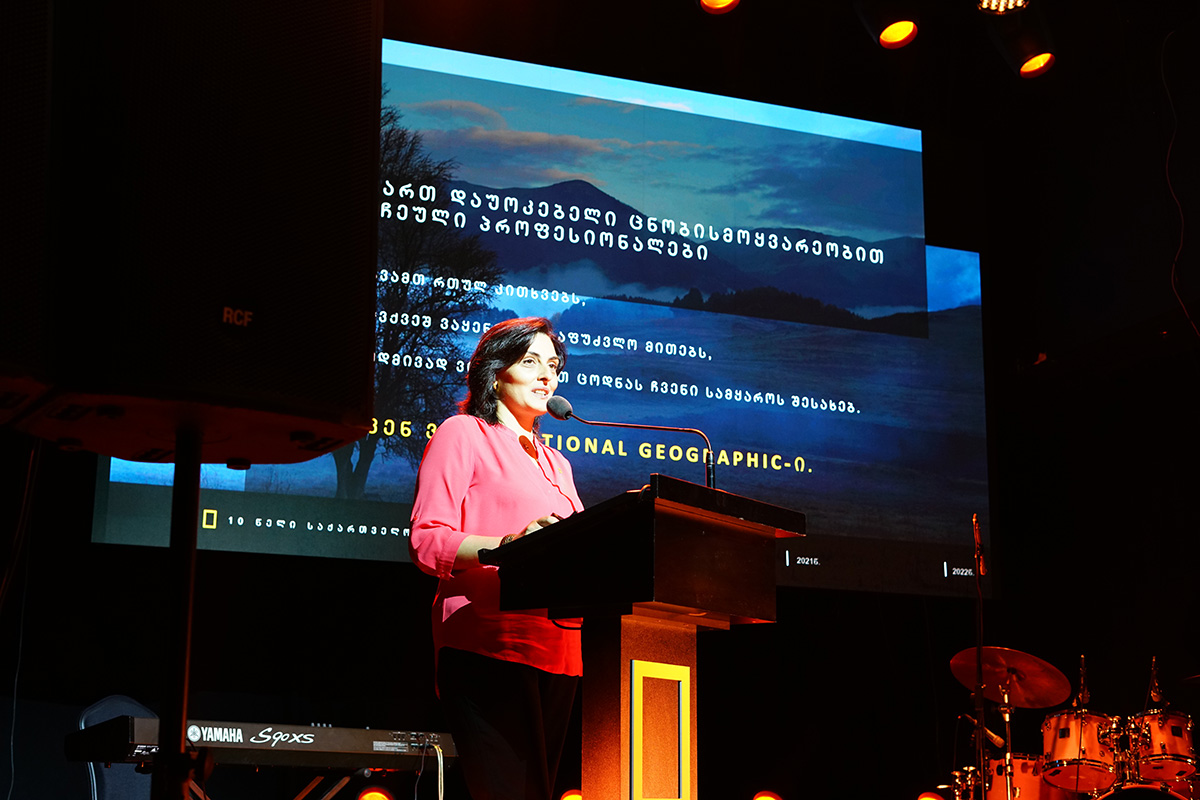 ღონისძიებას ესწრებოდა საქართველოს პრეზიდენტი სალომე ზურაბიშვილი, რომელმაც National Geographic-ს საზეიმო თარიღი მიულოცა და განაცხადა, რომ ის საქმე რასაც ჟურნალი აკეთებს, არა მხოლოდ კარგი და მისასალმებელია, არამედ ეროვნული და სახელმწიფოებრივი ღირებულებების მქონე საქმე, რომელიც ჩვენ პატარა ქვეყანას სჭირდება იმისთვის, რომ მის შესახებ ქვეყნის გარეთაც, საერთაშორისო ასპარეზზე გავიდეს ინფორმაცია.