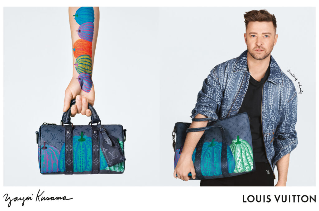 პოპ ვარსკვლავი ჯასტინ ტიმბერლეიკი Louis Vuitton-ის ახალი კამპანიის სახეა. მოდის სახლმა კამპანია სახელწოდებით Creating Infinity იაპონელ სიურეალისტ არტისტთან, იაიოი კუსამასთან თანამშრომლობის ფარგლებში წარადგინა. ფოტოებში ტიმბერლეიკს აცვია კოსტიუმი, რომელიც კუსამას ნამუშევრებით შთაგონებული პრინტებით არის გაფორმებული. ამავე ფოტოებში, პოპ ვარსკვლავს ჩანთა უკავია, რომელის დიზაინიც იაპონელი არტისტის ხელწერისათვის დამახასიათებელი გოგრის გამოსახულებებით არის გაფორმებული.