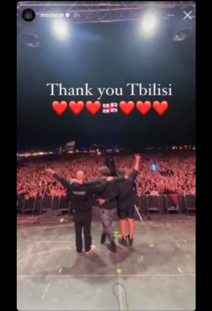 Tbilisi Open Air 2023 ცნობილმა გერმანულმა ელექტრონული მუსიკის ჯგუფმა Moderat-მა დახურა. ჯგუფმა მისი ცნობილი კომპოზიციები შეასრულა. აუდიტორიისთვის განსაკუთრებით ემოციური იყო კონცერტის ბოლოს შესრულებული მათი ერთ-ერთი ყველაზე ცნობილი და მსმენელის საყვარელი კომპოზიცია A New Error. ამის შემდეგ კი მაყურებლის მოთხოვნით Moderat-მა მისი კიდევ ერთი სავიზიტო სიმღერა – Bad Kingdom აუდიტორიასთან ერთად შეასრულა.