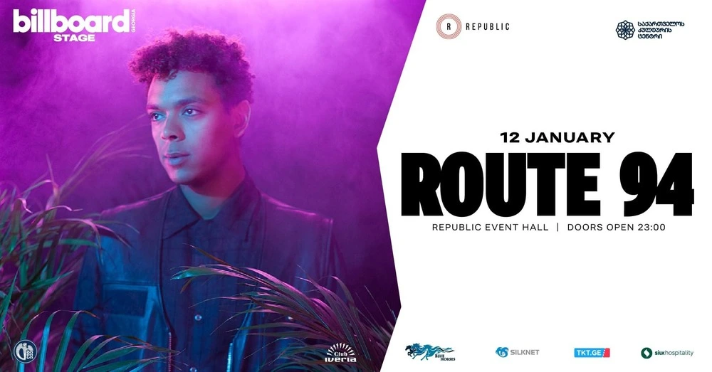 2024 წლის 12 იანვარს „რესპუბლიკა ივენთ ჰოლის“ სცენაზე Billboard Stage-ის მუსიკალური სერიების ფარგლებში კიდევ ერთი პოპულარული არტისტი წარდგება. კონცერტს ბრიტანელი მუსიკოსი, ROUTE 94-ს გამართავს. Route 94, იგივე Rowan Jones მსოფლიო მუსიკალური სამყაროსთვის განსაკუთრებით ცნობილი თავისი ჰიტით – My Love გახდა, რომელიც ბრიტანეთის მუსიკალური ჩარტების სათავეში არაერთხელ მოხვდა. Route 94 „რესპუბლიკა ივენთ ჰოლის“ სცენაზე თავისი ჰიტებით და განსხვავებული ჟანრობრივი ელემენტებით მდიდარი პროგრამით, ქართველ მსმენელს მრავალფეროვან და საინტერესო მუსიკალურ გამოცდილებას ჰპირდება.