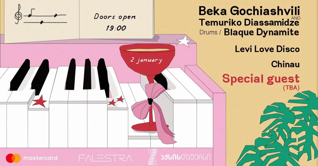 2 იანვარს, ბედობას, Falestra-ში პიანისტი ბექა გოჩიაშვილი და მუსიკოსი თემურიკო დიასამიძე ერიკა ბადუს დრამერთან ერთად მუსიკალურ ლაივს გამართავენ. საღამოს ასევე ეყოლება სპეციალური სტუმარი. როგორც ღონისძიების აღწერაში ვკითხულობთ, ეს არის  მომღერალი, რომელიც ცნობილი და ენერგიული სიმღერებით აუდიტორიას განსაკუთრებულ განწყობას შეუქმნის.