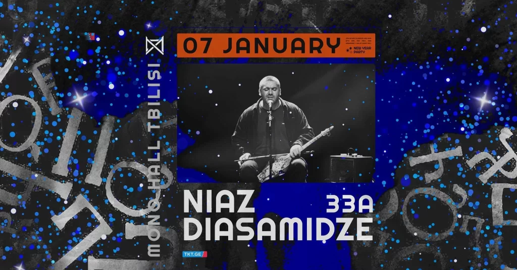 7 იანვარს, შობის დღესასწაულზე Mono Hall-ში  ნიაზ დიასამიძე & 33ა-ს კონცერტი გაიმართება. მსმენელისათვის კარგად ნაცნობი და  საყვარელი მუსიკალური პროექტის შემოქმედება ჟანრობრივად მრავალფეროვანია. ამჯერად ეს რეპერტუარი Mono Hall-ის სცენაზე შესრულდება.