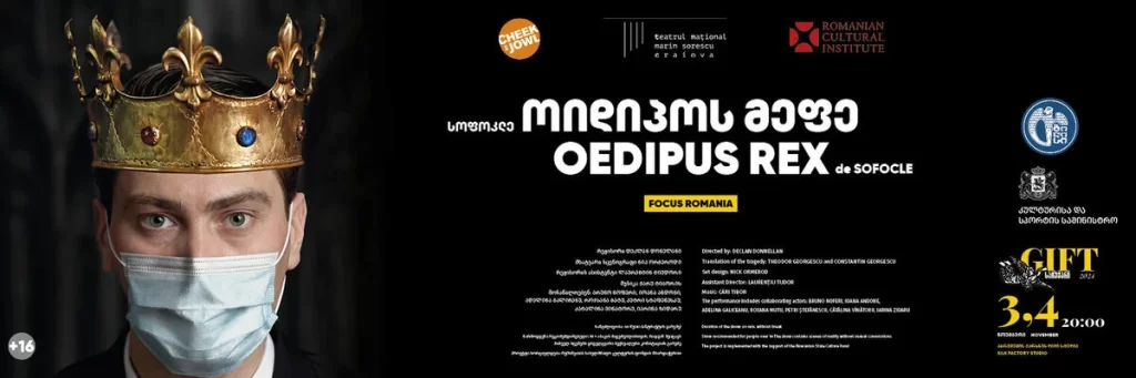 წელს ჩამოგვაქვს ორი უცხოური სპექტაკლი. როგორც იცით, ყოველ წელს ვირჩევთ ქვეყანას, რომელიც არის ფესტივალის ფოკუსში და ამჯერად ეს იქნება რუმინეთი. ფესტივალი გაიხსნება რუმინული სპექტაკლით „ოიდიპოს მეფე” (Oedipus Rex). ეს არის ბრიტანელი რეჟისორის, დეკლან დონელანისა და კრაიოვას ნაციონალური თეატრის ერთობლივი სპექტაკლი, რომლის ნახვაც ქართველ მაყურებელს 3 და 4 ნოემბერს აბრეშუმის ქარხანაში შეეძლება. ეს არის ძალიან გამორჩეული დადგმა, სადაც მაყურებელი დგას ფეხზე და სპექტაკლის განმავლობაში გადაადგილდება დასთან და მსახიობებთან ერთად, რითაც ხდება მთელი პროცესის მონაწილე და თავად მიჰყვება მოვლენათა განვითარებას. ეს კი კიდევ უფრო კრიტიკულს ხდის აუდიტორიის მხრიდან თვითონ სპექტაკლის შეფასებასა და აზრის გამოხატვას.
