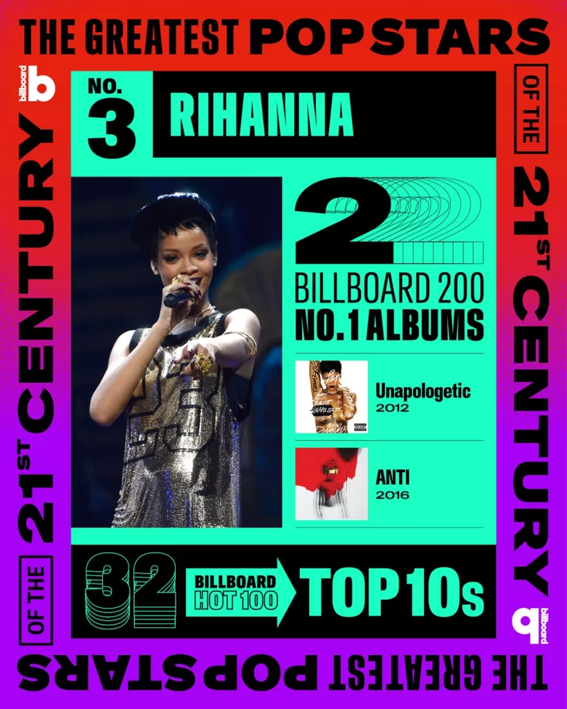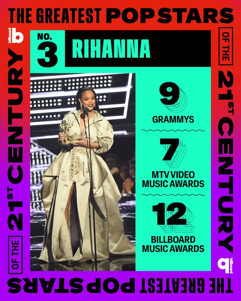 Hot 100-ის 14 ლიდერი ჰიტით (ყველაზე ბევრი ჩარტის ლიდერი ჰიტი ამ საუკუნის არტისტებს შორის), Billboard 200-ის ორი ლიდერი ალბომით, ცხრა გრემითა და ერთსიტყვიანი სახელით, რომელსაც მუსიკიდან მოდამდე ნებისმიერი კარის გაღება შეუძლია, „შავკანიან მადონად” გადაქცევის სურვილი რიანამ უკან ჩამოიტოვა. ის ალბათ თავად კიდევ უფრო შთამაგონებელია: შავკანიანი იმიგრანტი ქალი კარიბის რეგიონიდან, რომლის ნიჭმა, სიმტკიცემ და განუმეორებელმა ქარიზმამ ის ისტორიაში ერთ-ერთ ყველაზე მნიშვნელოვან და წარმატებულ პოპვარსკვლავად აქცია. დღეს არის რიანა და არის ასეულობით პოპვარსკვლავი იმავე სურვილით, რომ ახლა უკვე მისი სახელის წინ დაწერონ განსაზღვრება და მისი პირადი წარმატების ფორმულა თავიანთ მოდელად აქციონ.