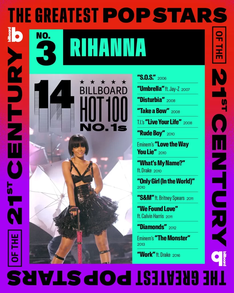 ვინაიდან 21-ე საუკუნის პირველი მეოთხედი დასასრულს უახლოვდება, „ბილბორდი” მომდევნო თვეების განმავლობაში გამოცემის გუნდის მიერ შედგენილ, ბოლო 25 წლის უდიდესი პოპვარსკვლავების რეიტინგს შემოგთავაზებთ.