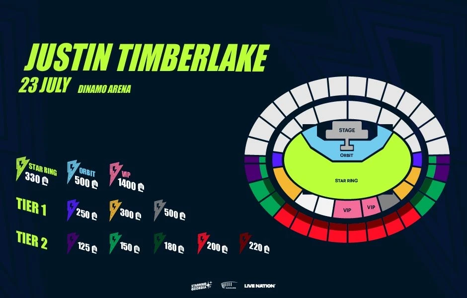 ჯასტინ ტიმბერლეიკის კონცერტზე დასასწრები ბილეთების გაყიდვა უკვე დაიწყო. მათი შეძენა მსურველებს TKT.ge/JustinTimberlake-ზე და Super App-ში შეუძლიათ. ბილეთების ფასი 125 ლარიდან იწყება, გარკვეულ კატეგორიებზე კი კონკრეტული სახის შეთავაზებები მოქმედებს.