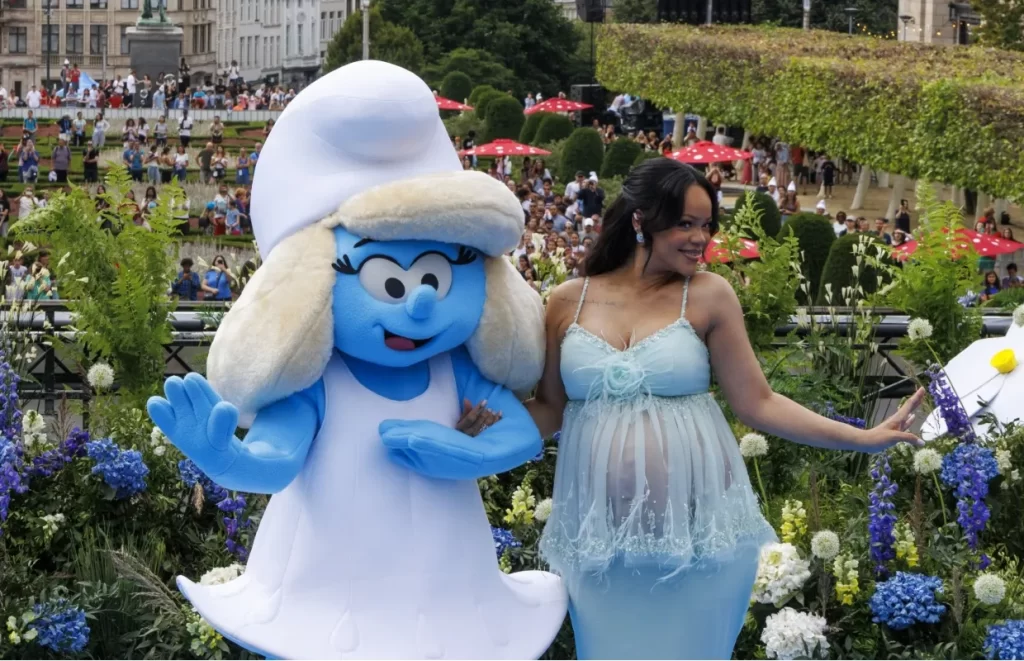 შაბათს ბრიუსელში გამართულ პრემიერაზე ორსული Rihanna ლურჯ ხალიჩაზე გამოჩნდა. იგი ანიმაციური ფილმის, Smurfs-ის პროდიუსერი და სმურფეტის როლის გამხმოვანებელია.