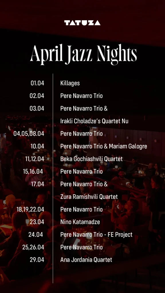 მოწვეული სტუმრების გარდა, Tatuza, ტრადიციულად, სცენას უთმობს ქართველ არტისტებსაც. მსმენელის წინაშე წარდგებიან ირაკლი ჭოლაძის, ბექა გოჩიაშვილისა და ზურა რამიშვილის კვარტეტები. 23 აპრილს კი ჯაზკლუბში ნინო ქათამაძის კონცერტი გაიმართება. აპრილის თვის კონცერტების სერიას 29 აპრილს ანა ჟორდანიას კვარტეტი დაასრულებს.